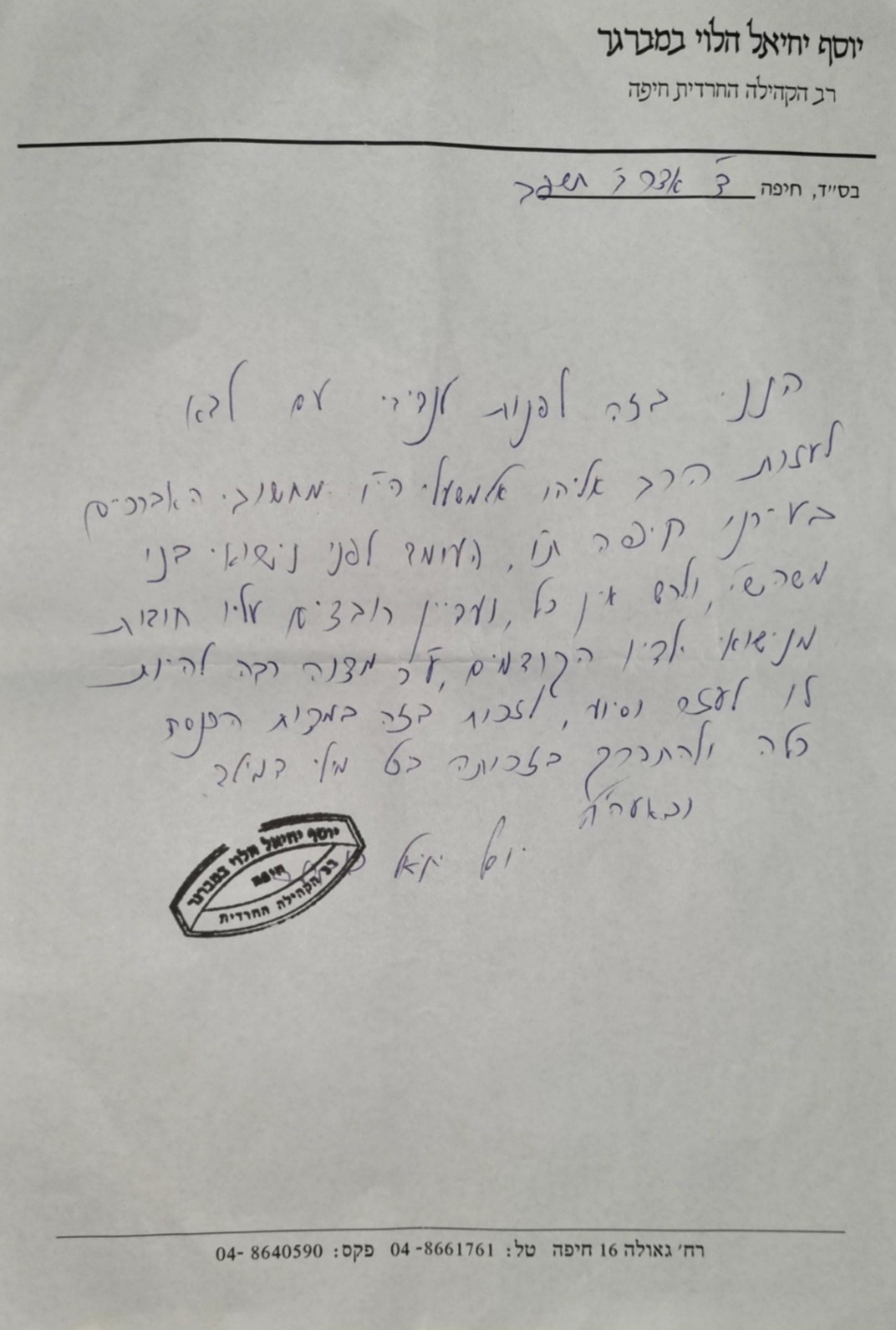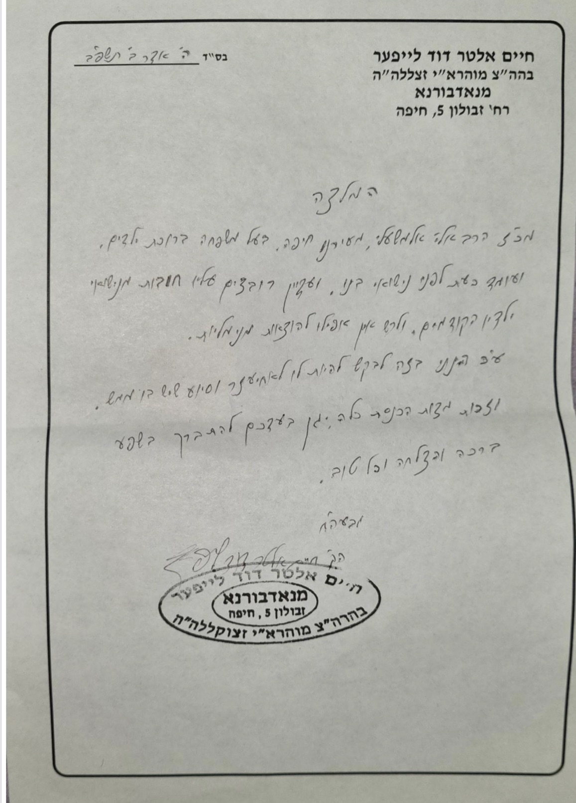 Cette famille nombreuse, en très grande difficulté, n’ayant pas fini de payer les dettes des précédents mariages, a du mal à joindre les deux bouts et se prive de choses essentiels. Elle a besoin d’être aidée pour pouvoir financer ce nouveau mariage. Les Rabanim d'Israël, le Rav de la Kehila Harédite de Haïfa, Rav Yehiel Halevi Bamberger et l’Admour de Nadvorna, le Rav Haïm Alter David Laïfer, soutiennent cet appel aux dons.